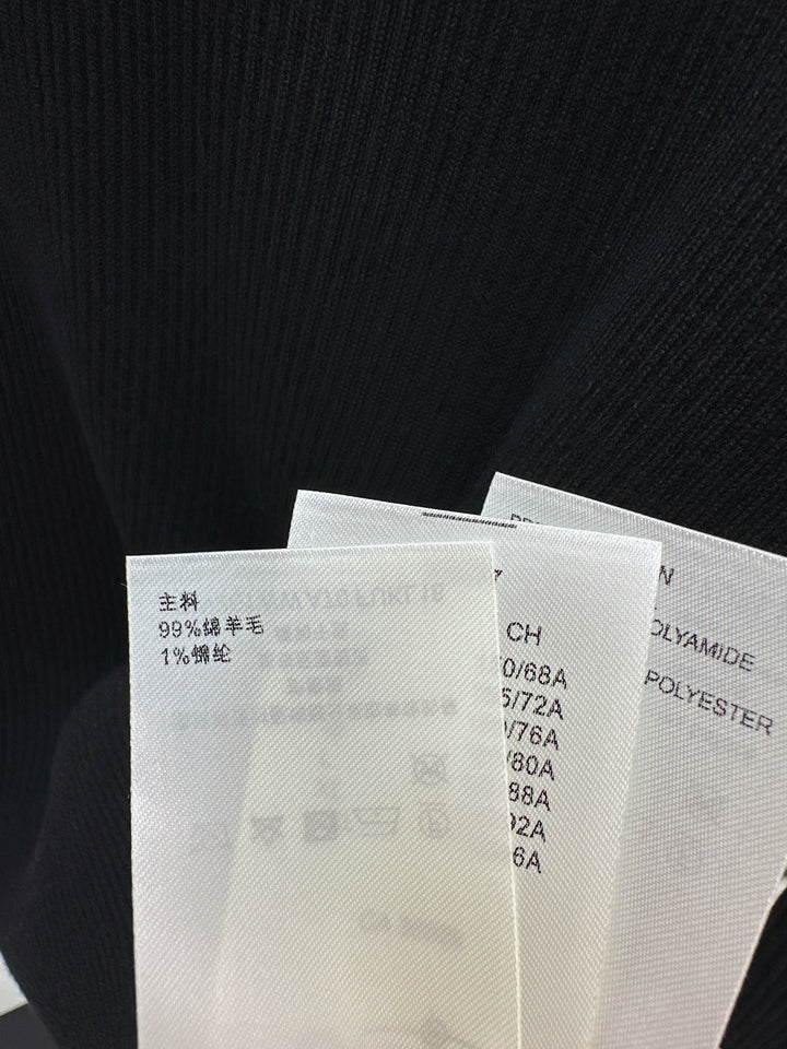 Wool yarn has a comfortable and elastic texture, with a slim fit and high neck as the base cut. The chest is sewn with letters and metal logos in the center, providing a strong sense of elasticity and a snug fit. It is visually narrowed, elongated, and in one color. Available in stock. SML