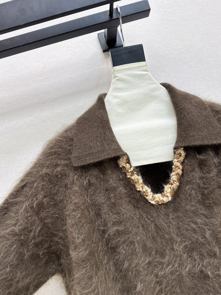 Sparkling woven decorative V-neck sweaterNew mixed color sweater