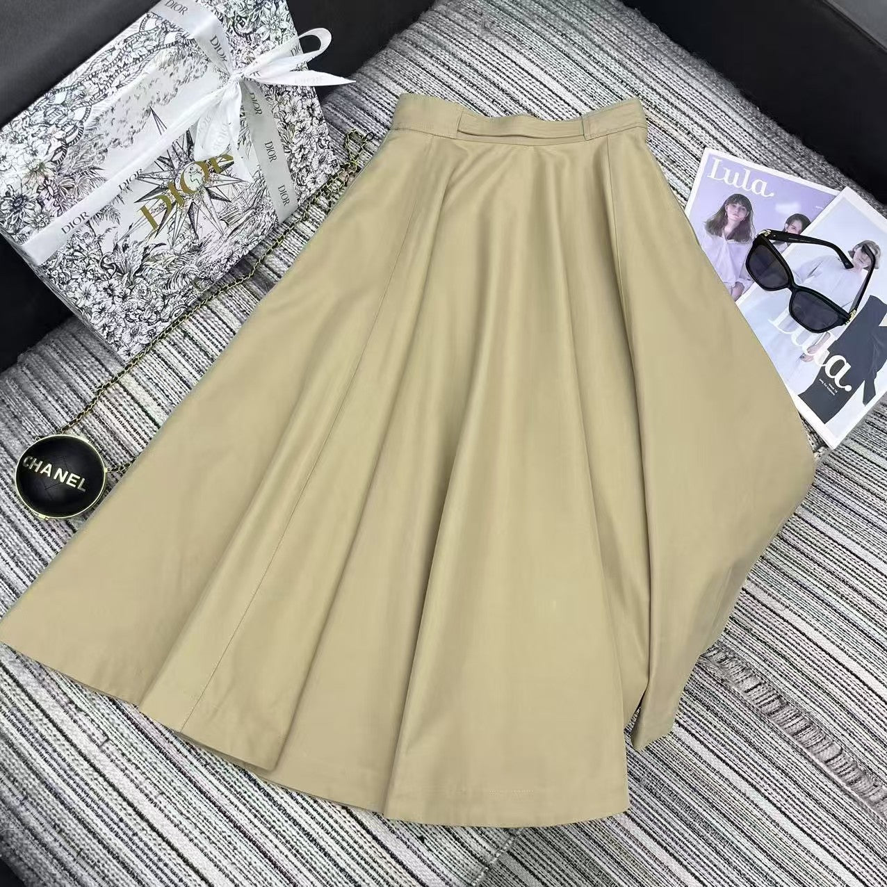 Wide skirt design, generous cut, embroidered lettering embellishment at the waist.