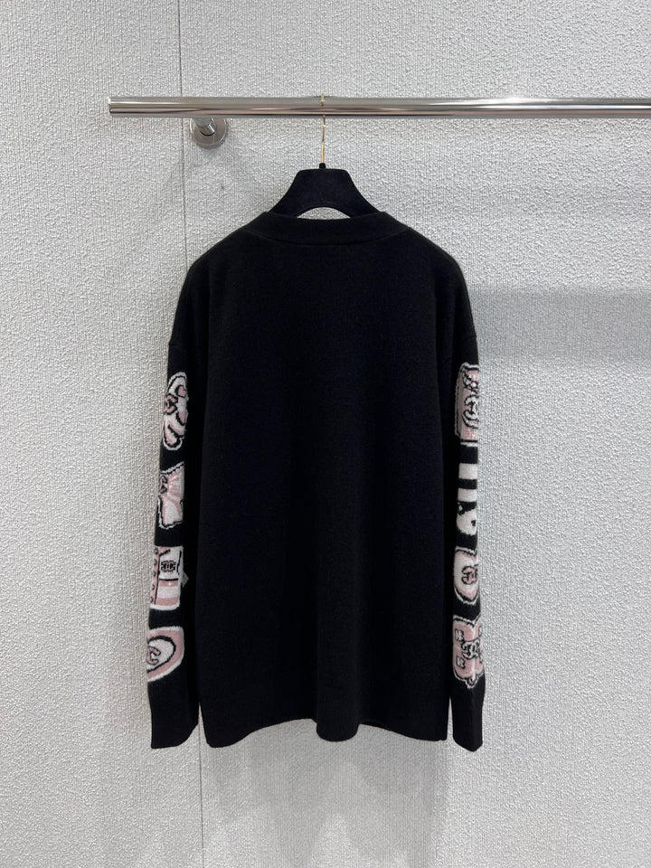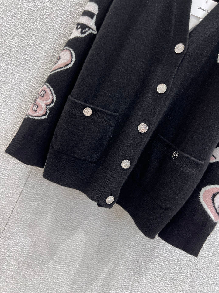 Sweet cartoon pattern inlaid cashmere cardigan jacket