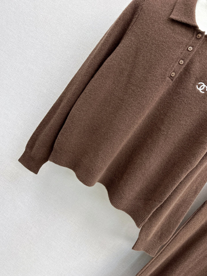 Polo knit sweater paired with straight leg pants, 100% thick spun wool yarn fabric, simple and atmospheric lazy version, durable, warm and stylish, all online, the most practical and versatile boutique autumn and winter base layering, daily high-end