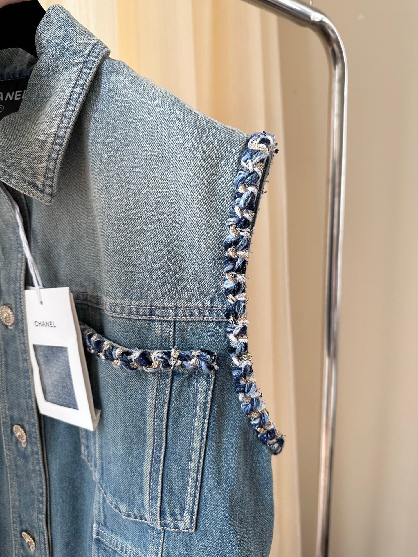 This tweed compilation denim vest features a stylish blue gradient wash that adds depth and character to your wardrobe. Crafted with durable denim, it offers both comfort and long-lasting wear. Perfect for layering, it enhances any casual or smart-casual look with a refined yet edgy touch.