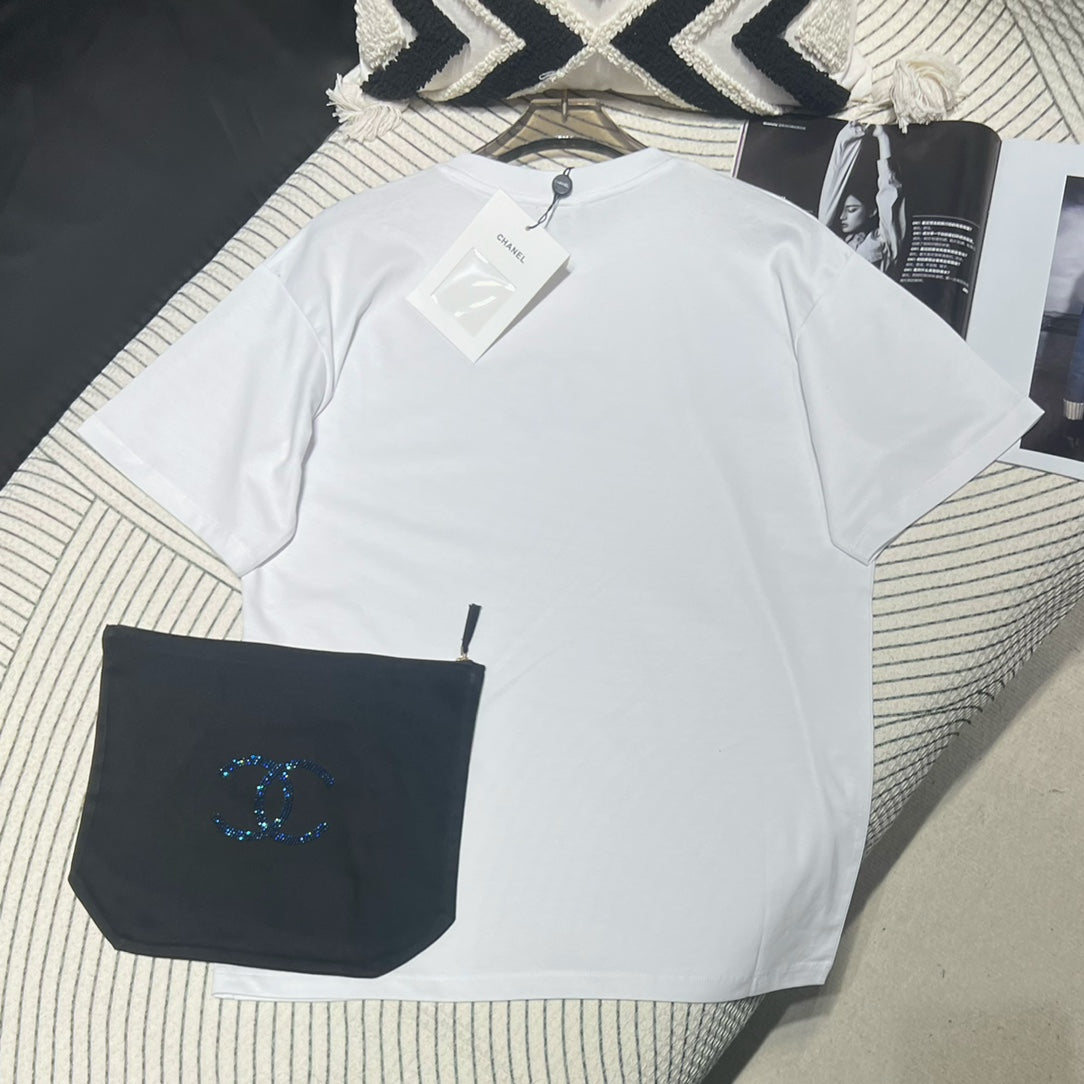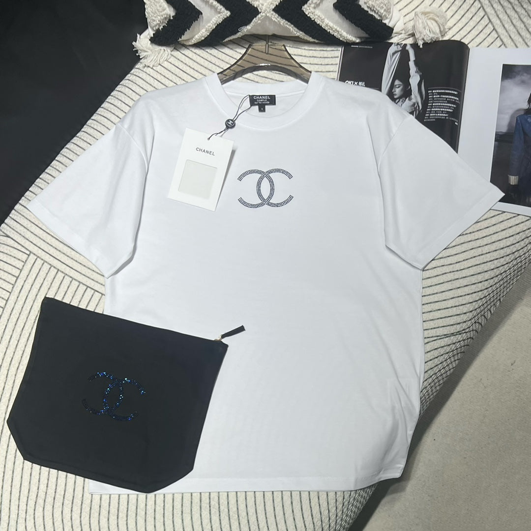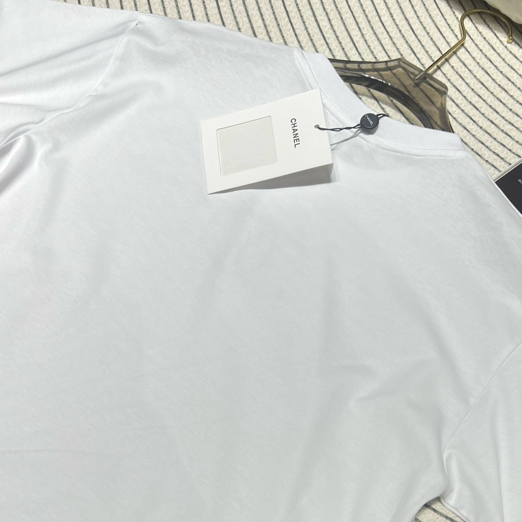 The resort-style short-sleeved series is made with heavy craftsmanship. It is a very stylish short-sleeved made of custom-made cotton fabric. It is comfortable and breathable. It has double C Swarovski hot diamonds on the chest, which is fashionable and eye-catching. This style does not have too many designs and can be casually matched with skirts and skirts. Jeans are so high-end! Summer Fashionable and Age-Reducing Versatile Items