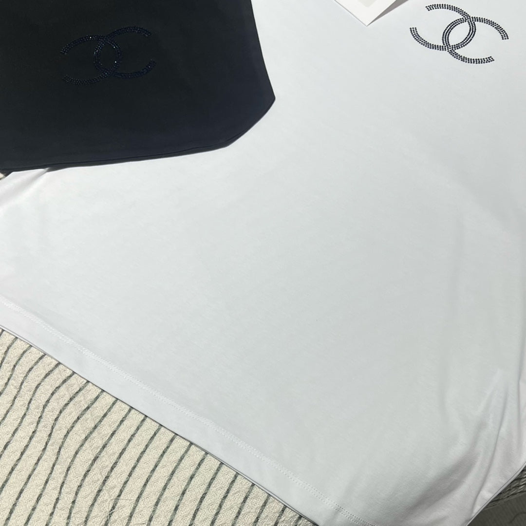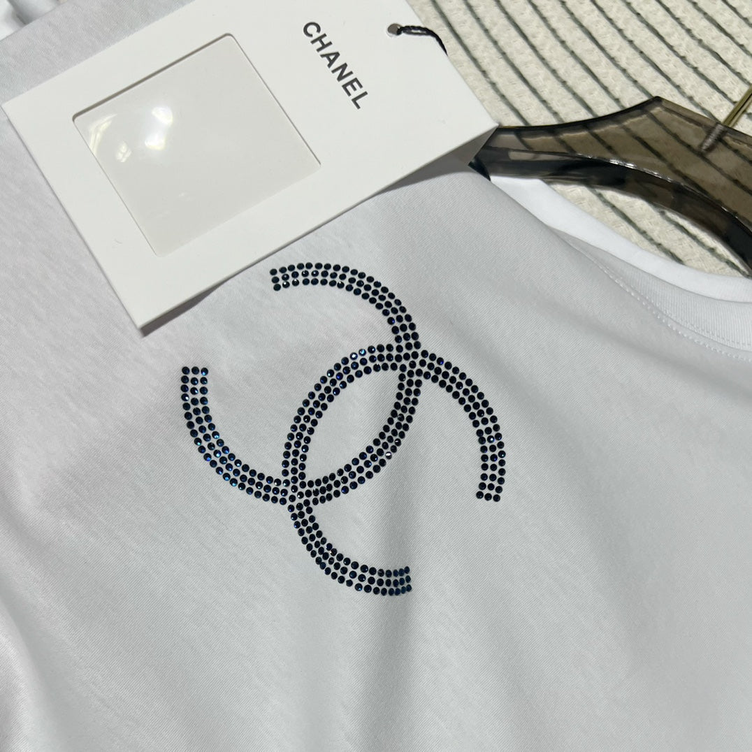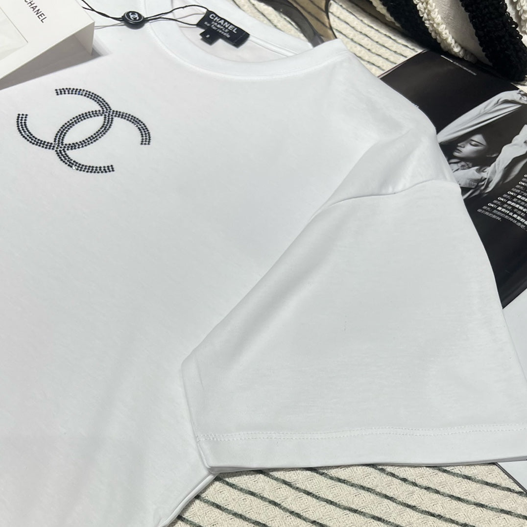 The resort-style short-sleeved series is made with heavy craftsmanship. It is a very stylish short-sleeved made of custom-made cotton fabric. It is comfortable and breathable. It has double C Swarovski hot diamonds on the chest, which is fashionable and eye-catching. This style does not have too many designs and can be casually matched with skirts and skirts. Jeans are so high-end! Summer Fashionable and Age-Reducing Versatile Items