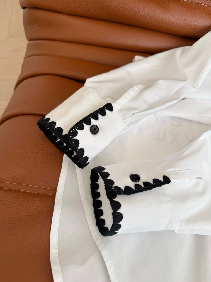 Wave embroidered lace design shirt