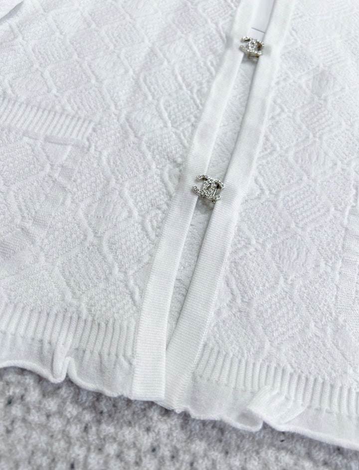 Exquisite rhinestone double C-buckle design, diamond grid dark knit fabric, slim fit and slimming version. Paired with the same white interior, it exudes a strong sense of luxury!