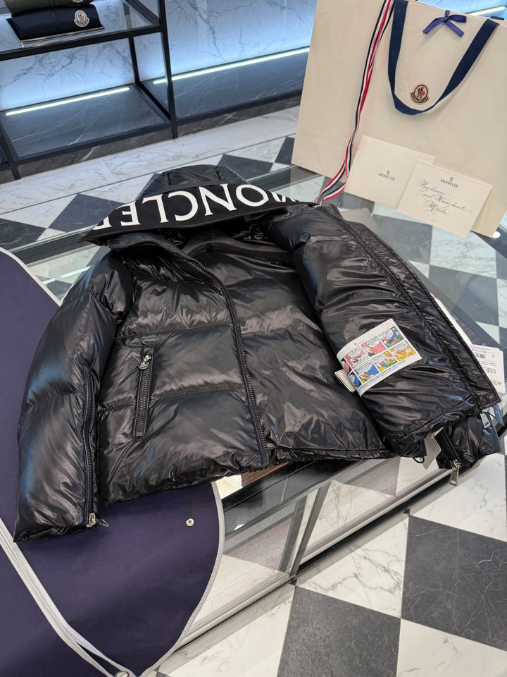Hue down is made of the iconic lon laqu é fabric, showcasing Moner's distinctive style. The wide neckline design adds a new playful touch to the style. The hood is adorned with geometric markings, adding a finishing touch.