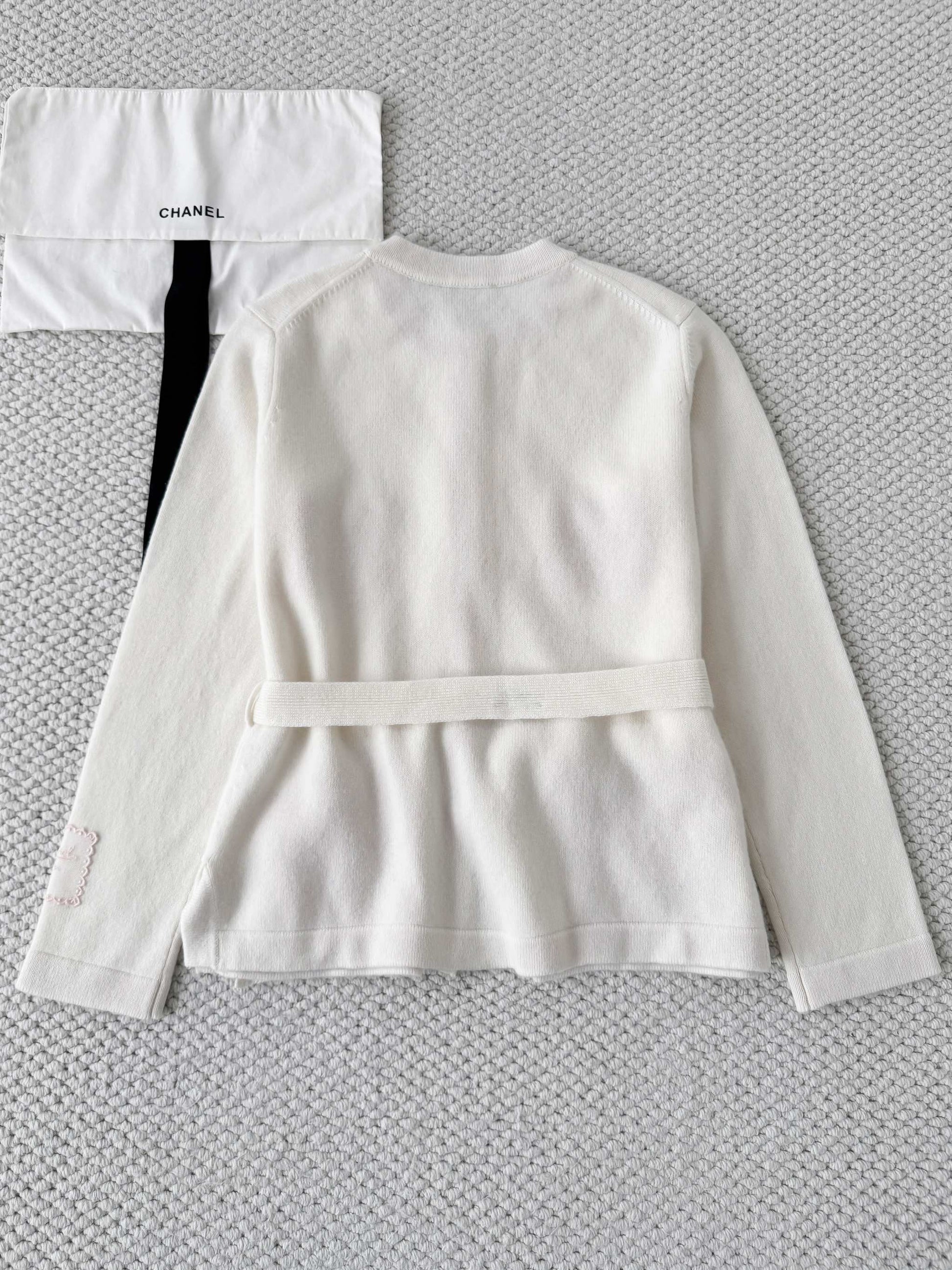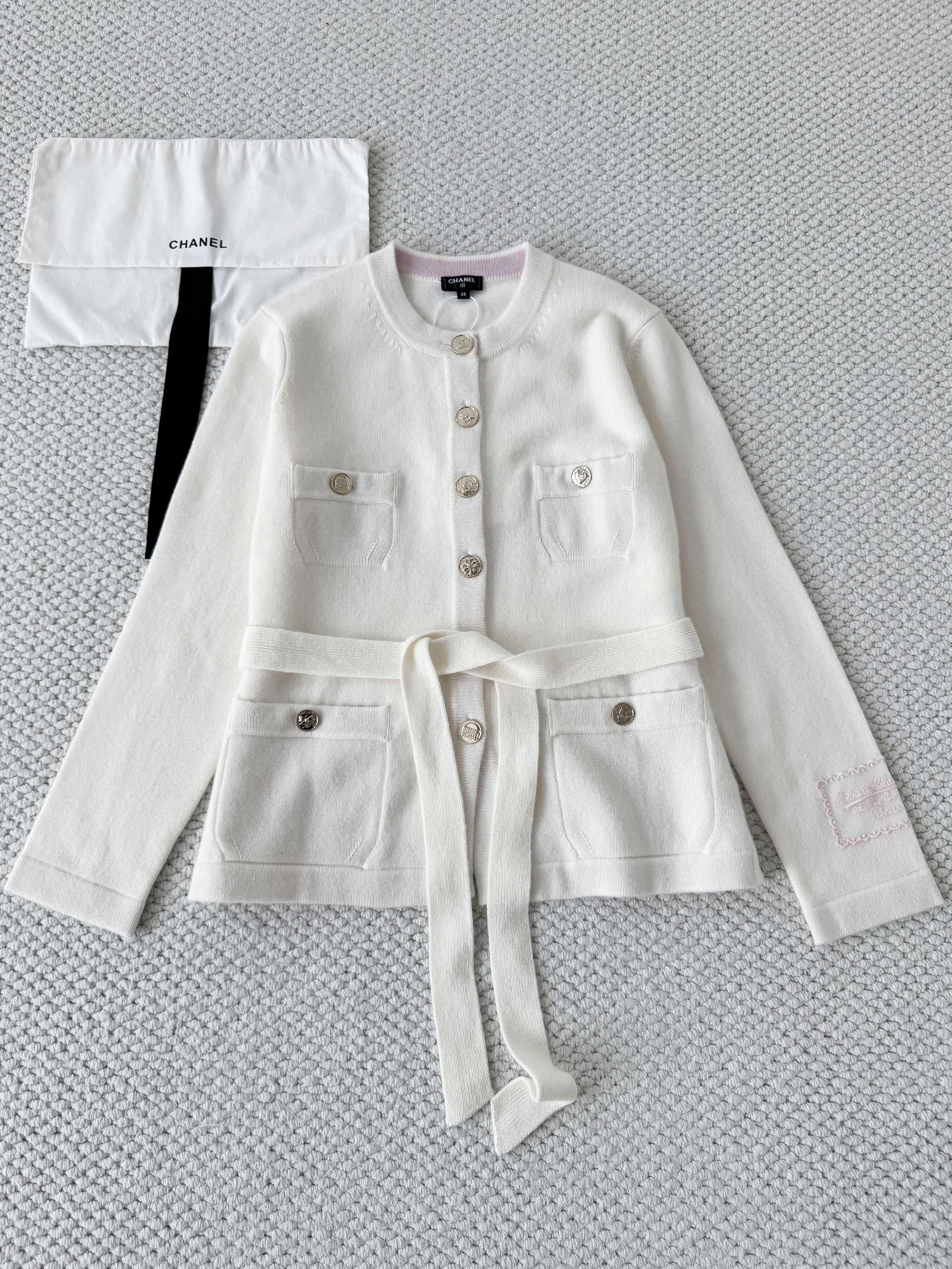 Minimalist two-color collar strap long knitted cardigan development! High end production! The whole body is finely crocheted with textured patterns, and the whole body is matched with contrasting colors, threaded edges, and elegant temperament. The lazy chest is decorated with rhinestone buckles, tie straps, and butterfly bows, making it easy to highlight the perfect details. The metal buckles are embellished on the upper edge of the pocket, which is exquisite and stylish. It is suitable for layering and mixing items. It can be stylish, hot and spicy, fashionable and casual